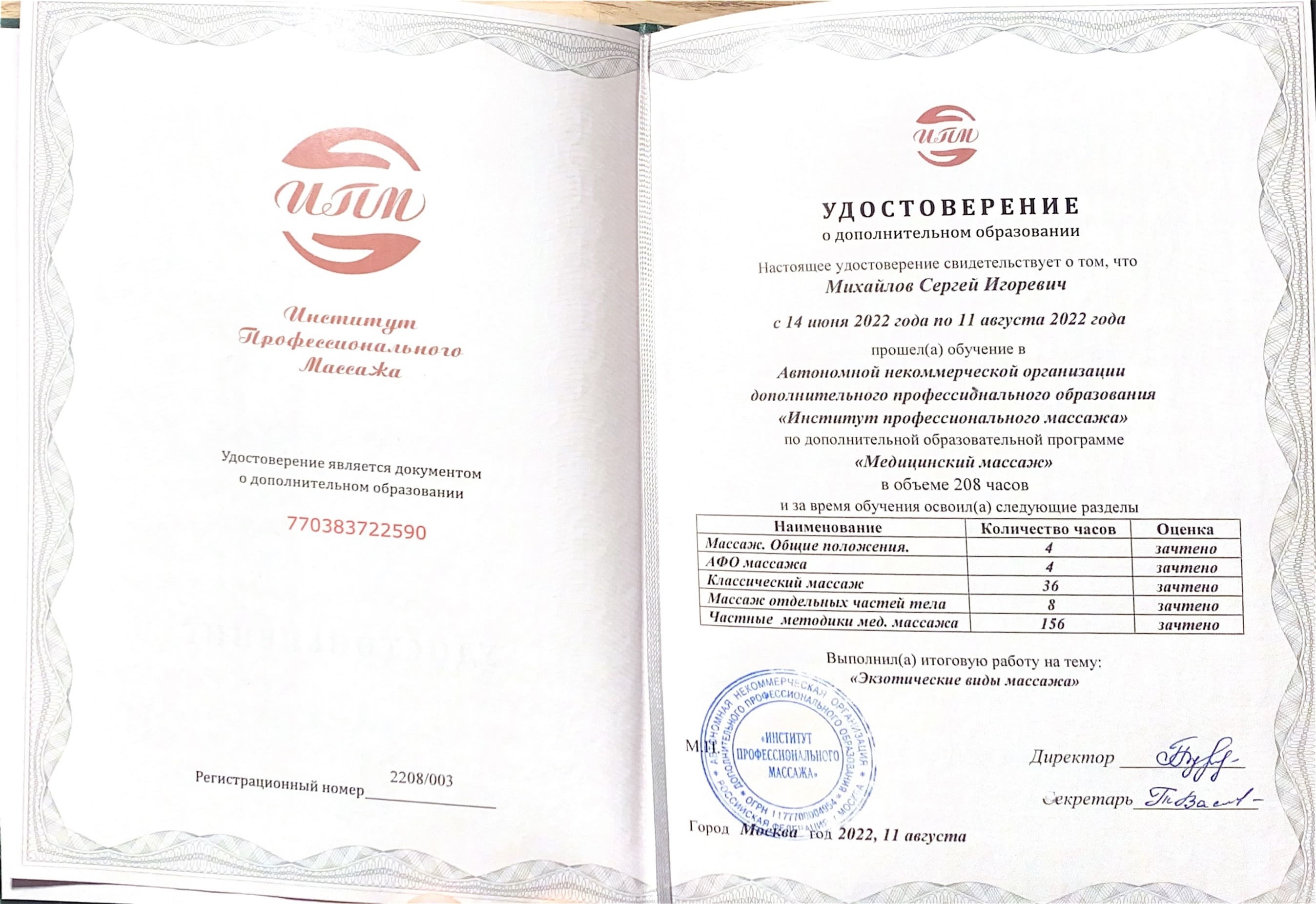 2022 Институт профессионального массажа: медицинский массаж.